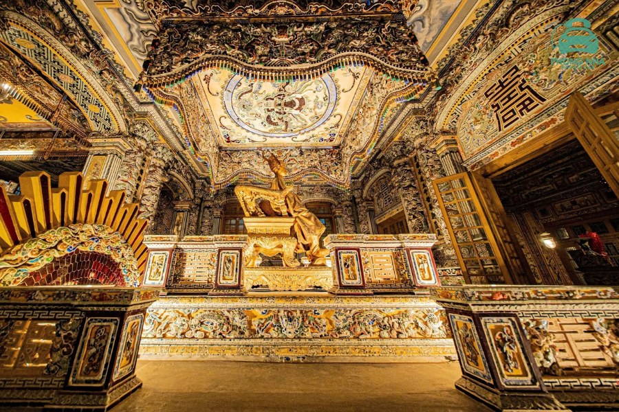 And at the end of the journey, we will arrive at Khai Dinh Tomb. This is probably the tomb with the most unique architecture, combining both Asian and European architectural styles. Upon arriving, you will be overwhelmed by the extremely sophisticated sculptures of soldiers and the king’s courtiers.