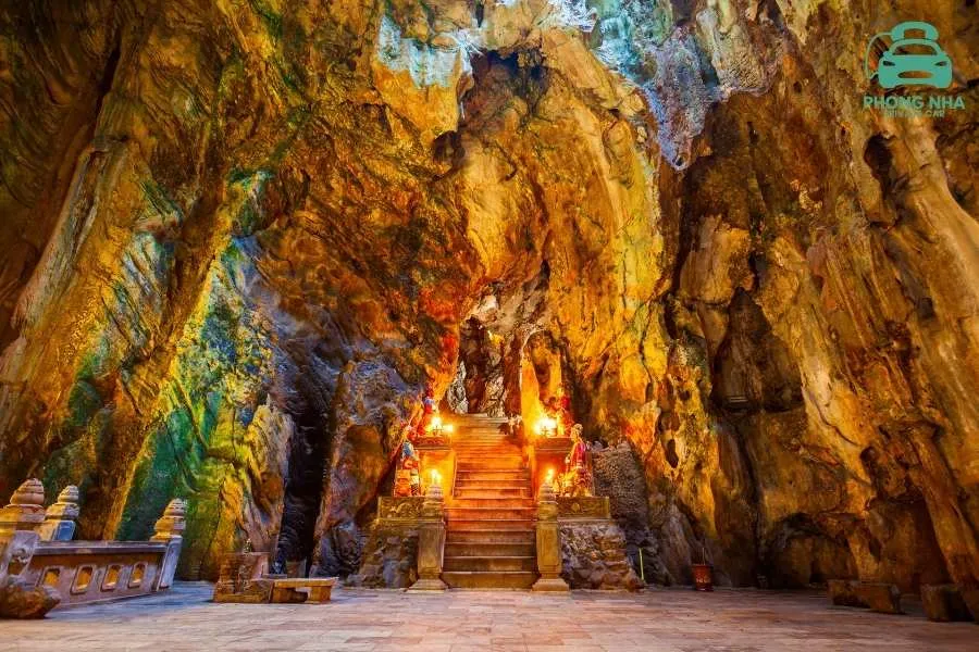 Stepping into the Marble Mountains, you can explore the mystical caves such as Huyen Khong Cave and Am Phu Cave, along with ancient temples like Linh Ung Pagoda and Tam Thai Pagoda nestled among the hills and forests. From the highest and most beautiful peak, Thuy Son, you can enjoy breathtaking panoramic views of the turquoise Non Nuoc Sea and the modern skyline of Da Nang in the distance.